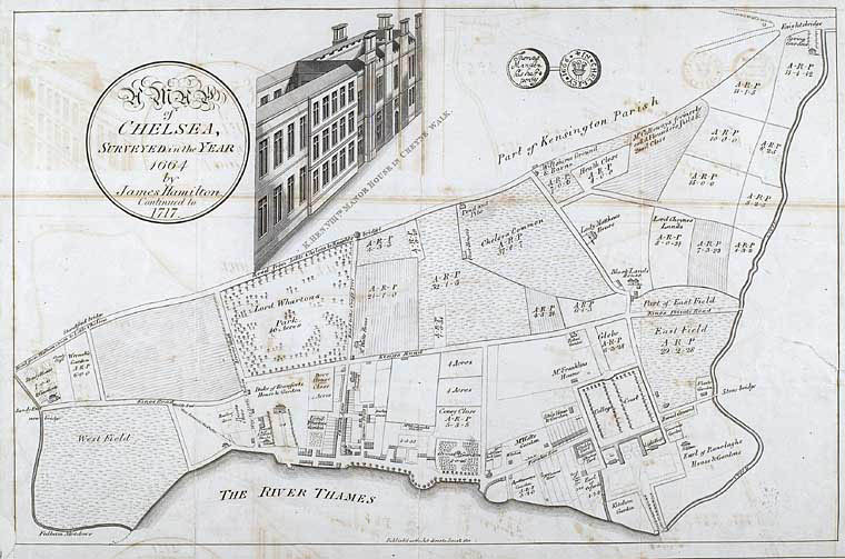 Chelsea in 1664 James Hamilton map, redrawn in 1717.