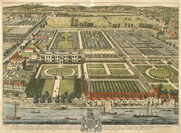 Kip’s view of Beaufort House, on the site of Thomas More’s estate, in 1708. Chelsea Park can be seen north of the formal gardens.