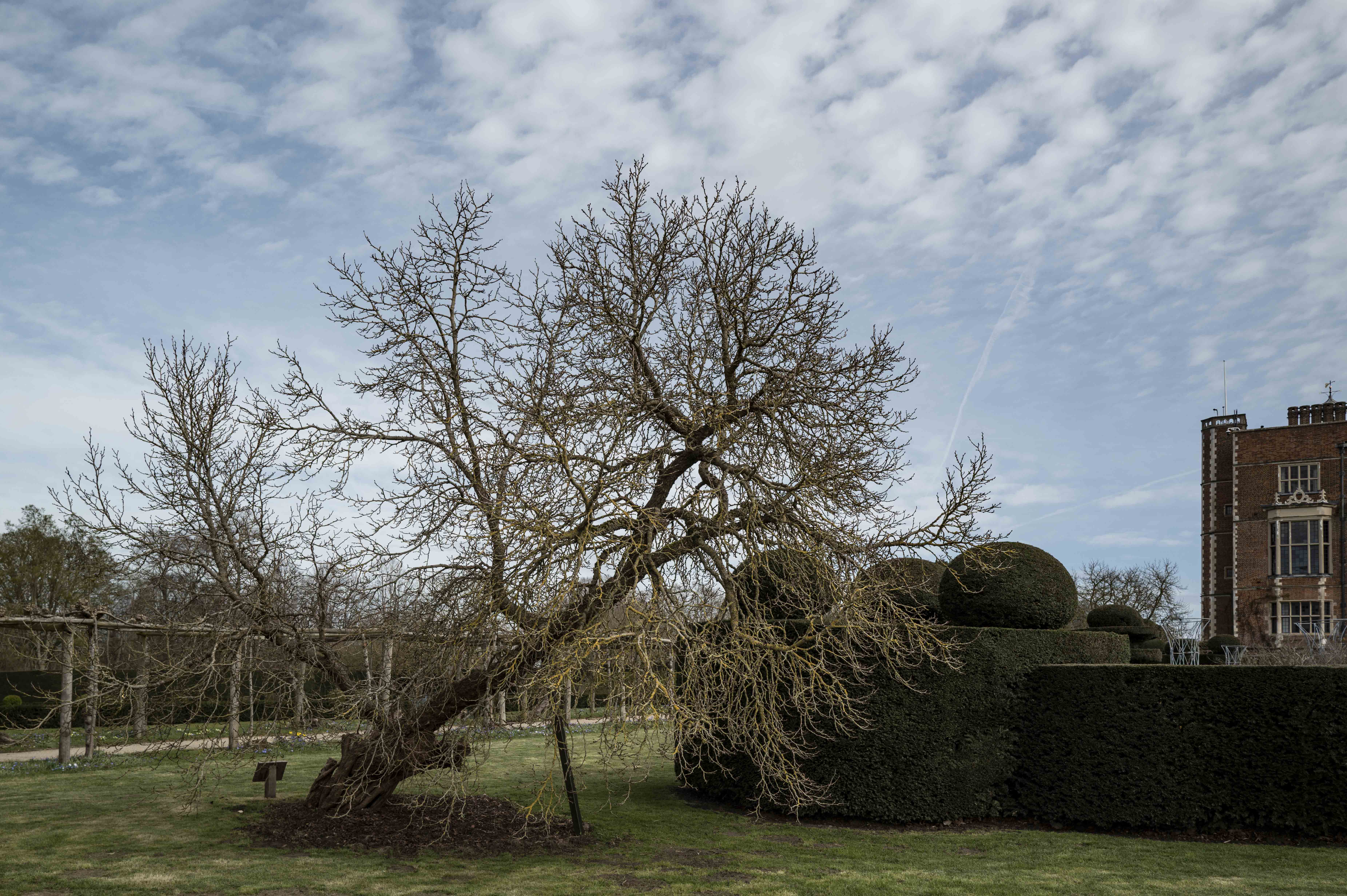 The ancient black mulberry in the West Garden probably dates to around 1611