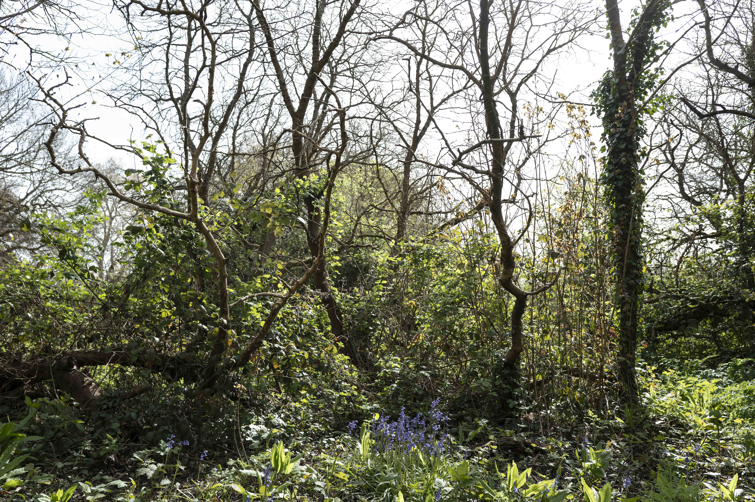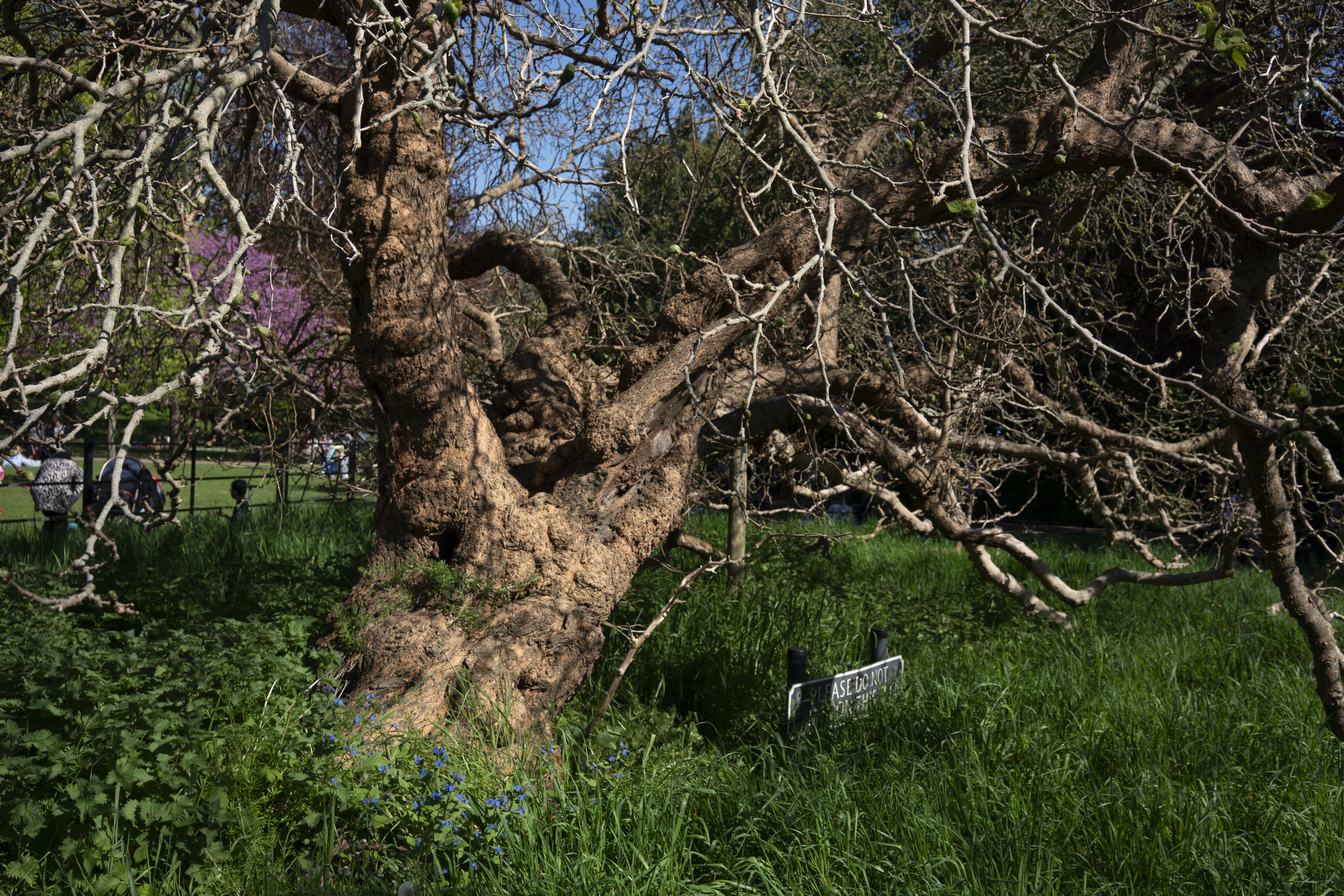 Bluebells under an ancient, layering mulberry tree (yes, a single tree) in the private orchard of Syon House