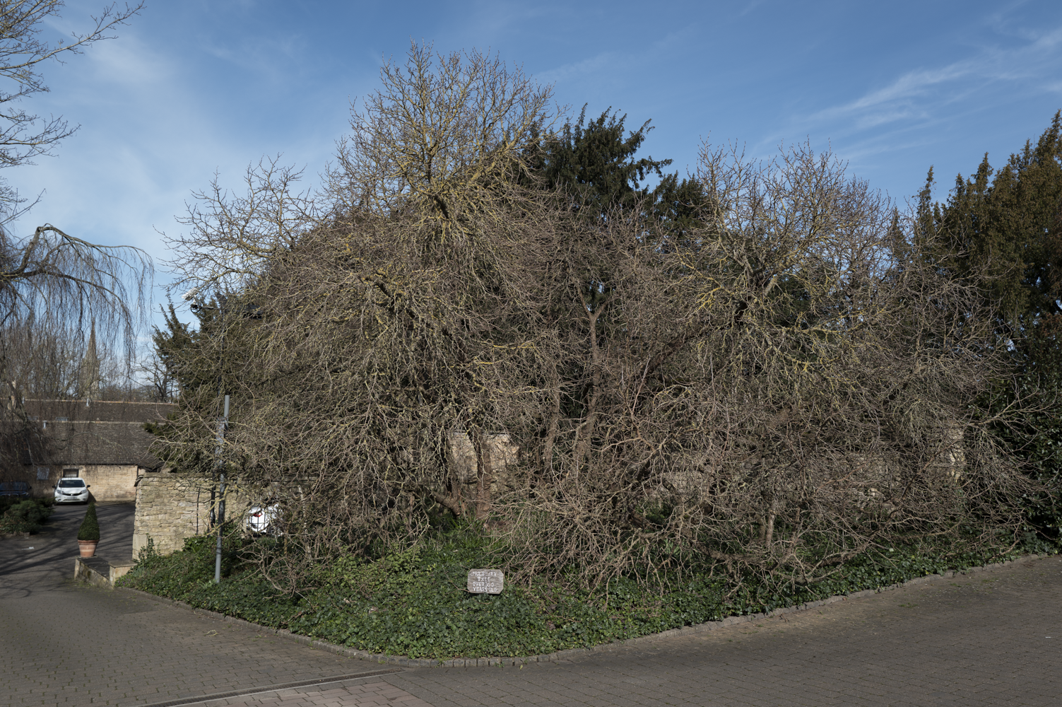 Sixty miles up the Great North Road, which defines the western and southern boundaries of Hatfield Park, is another historic black mulberry (also possibly 17th century), standing in the car park of The George Hotel, a former inn and staging post.